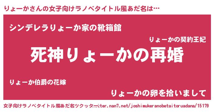 | 男性向けラノベタイトル風あだ名 | 『ノーゲーム・ノーリョーカ』 |
