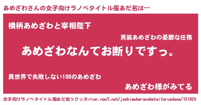 | 男性向けラノベタイトル風あだ名 | 『魔法科高校のあめざわ』 |