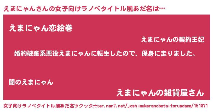 | 意味不明あだ名 | 『なめこ科えまにゃん属』 |