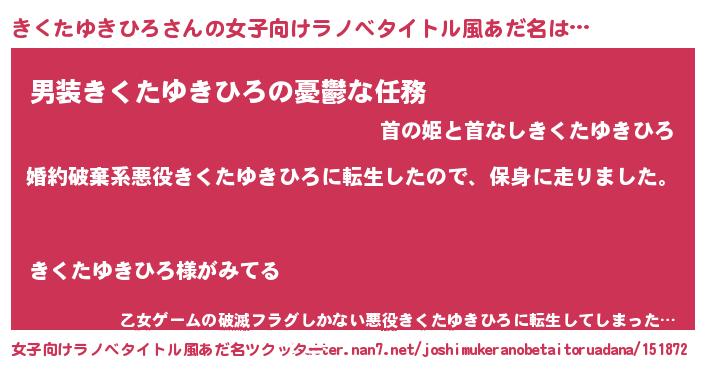 | 男性向けラノベタイトル風あだ名 | 『キクタユキヒロスレイヤー』 |
