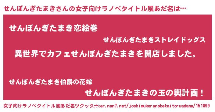 | 男性向けラノベタイトル風あだ名 | 『誰もが恐れるあのせんぼんぎたまきが、ぼくの専属メイドになるようです。』 |