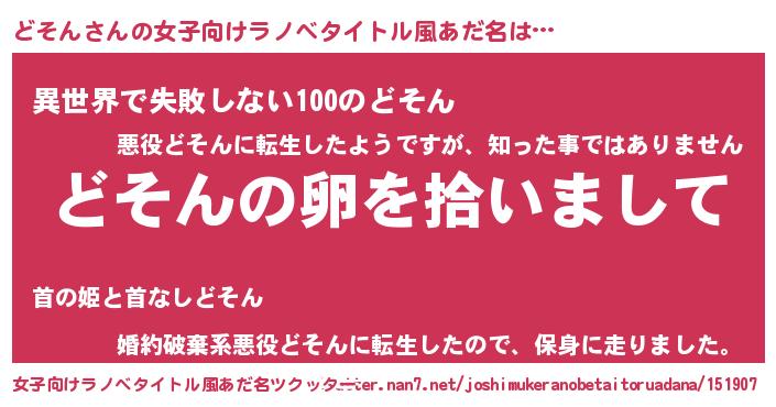 | 萌えアニメ | 主人公(どそん)のあだ名『 どそぴょん』 |