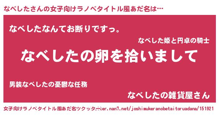 | 男性向けラノベタイトル風あだ名 | 『ダンジョンになべしたを求めるのは間違っているだろうか』 |