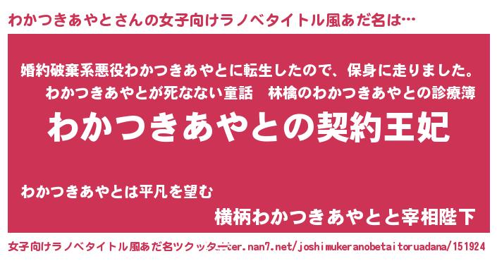 | ヘコむあだ名 | 『わかつきあやと(小並感)』『わかっ子』 |