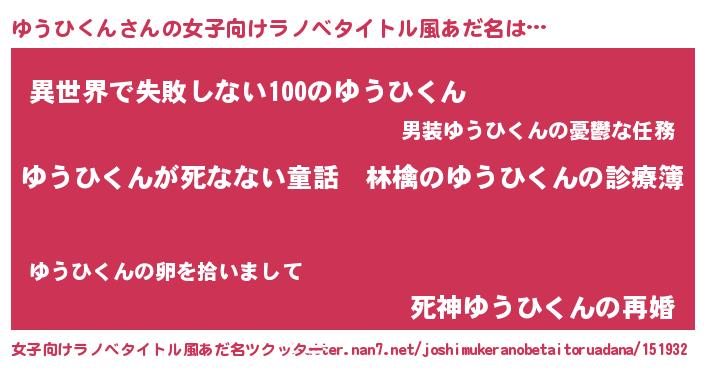 | 男性向けラノベタイトル風あだ名 | 『魔弾の王とゆうひくん』 |