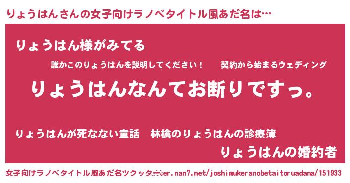 | 胡散臭い通販商品みたいなあだ名 | 『ガンによく効く高麗人参…その名も「りょうはん」』 |