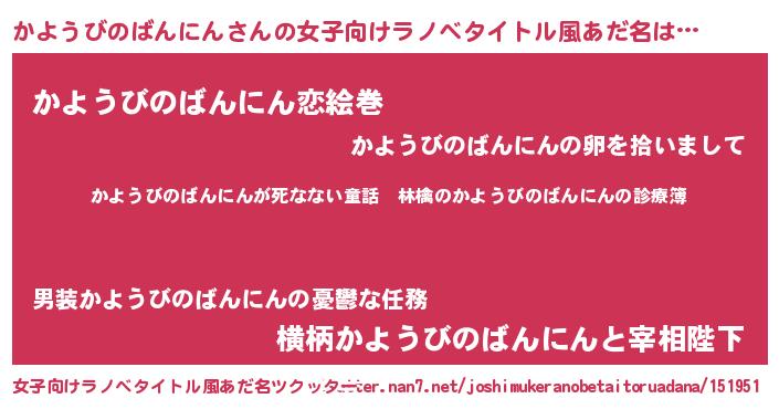 | 欧米人風あだ名 | 『ダレノガレかようびのばんにん』 |