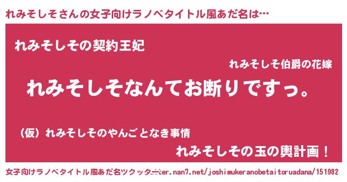 | 男性向けラノベタイトル風あだ名 | 『魔法科高校のれみそしそ』 |