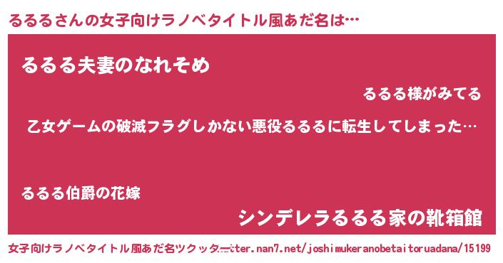 | ヘコむあだ名 | 『るる太郎』『なまこ酢』『るるにー』 |