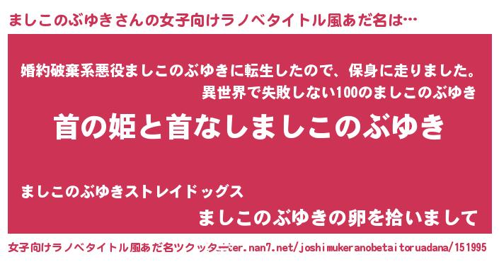 | ヘコむあだ名 | 『ましぷりん』『ましこのぶゆき(爆)』 |