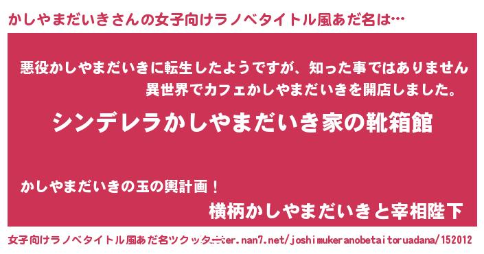 | ヘコむあだ名 | 『かしやまだいき(笑)』『かしぷりん』 |