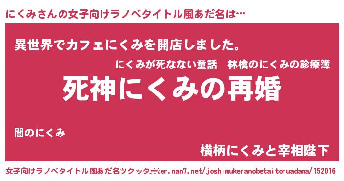 | 胡散臭い通販商品みたいなあだ名 | 『モンドセレクションを受賞したイリジウム磁石…その名も「にくみ」』 |