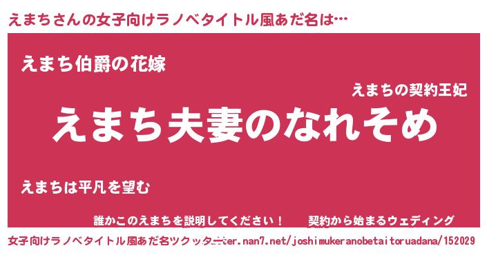 | 男性向けラノベタイトル風あだ名 | 『おまえをオタクにしてやるから、俺をえまちにしてくれ! 』 |
