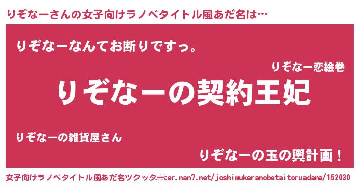 | 男性向けラノベタイトル風あだ名 | 『りぞなーという概念が存在しない退屈な世界 』 |
