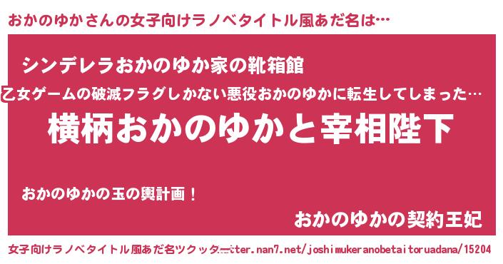 | 胡散臭い通販商品みたいなあだ名 | 『前代未聞の健康食品…その名も「おかのゆか」』 |