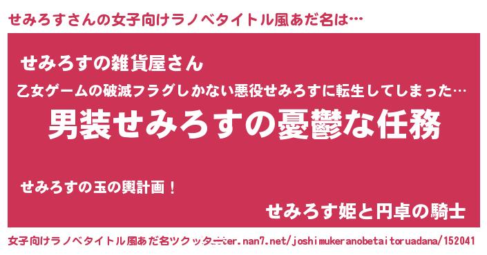 | 男性向けラノベタイトル風あだ名 | 『うちのせみろすが世界を掌握している!』 |