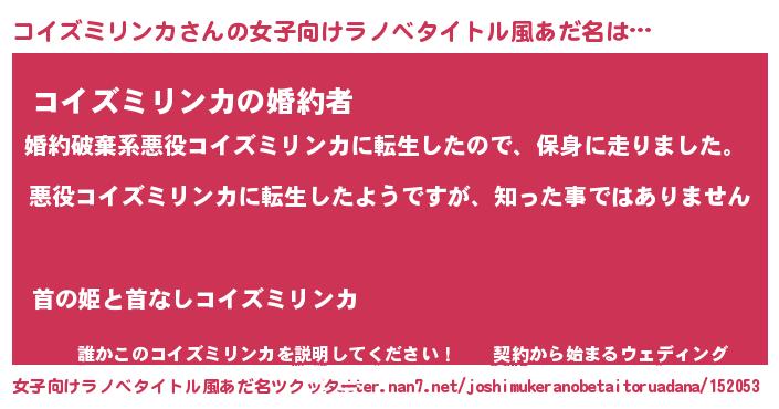 | 男性向けラノベタイトル風あだ名 | 『この素晴らしい世界にコイズミリンカを!』 |