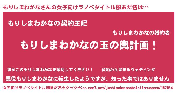 | 男性向けラノベタイトル風あだ名 | 『転生したらもりしまわかなだった件』 |