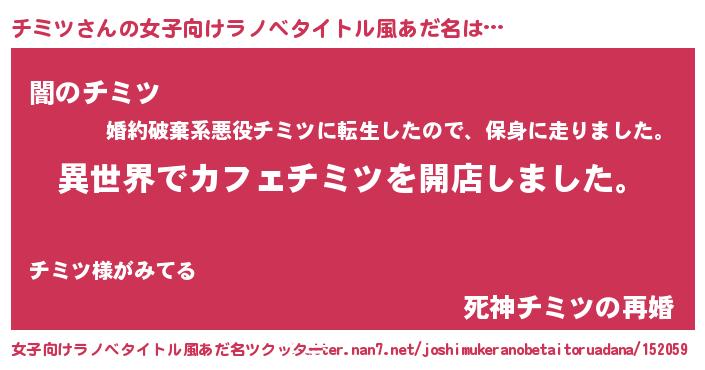 | 男性向けラノベタイトル風あだ名 | 『誰もが恐れるあのチミツが、ぼくの専属メイドになるようです。』 |