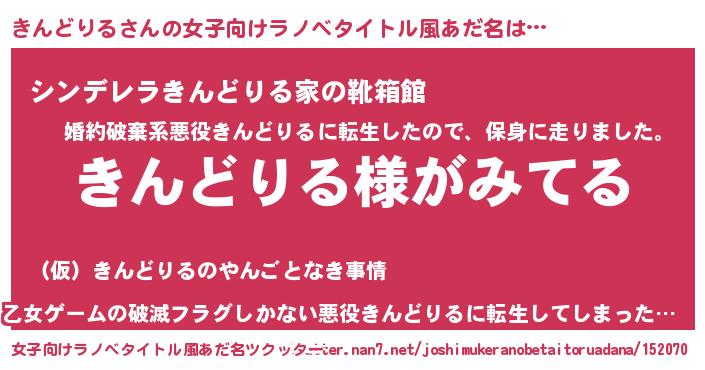 | 男性向けラノベタイトル風あだ名 | 『きんどりるの嫁は女の子じゃないと思った?』 |