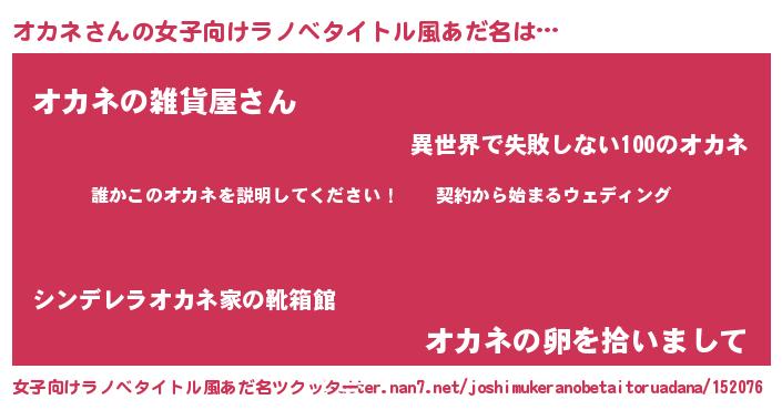 | 男性向けラノベタイトル風あだ名 | 『オカネアートオンライン』 |