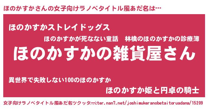 | 男性向けラノベタイトル風あだ名 | 『やはりほのかすかの青春ラブコメはまちがっている 』 |