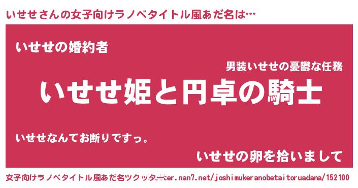 | ファンタジー風あだ名 | 『イセフェル』『エターナルイセセー』 |