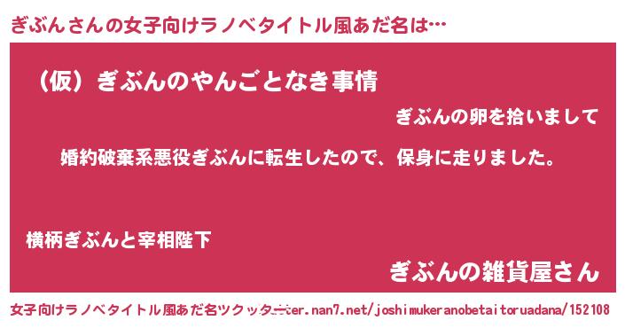 | 男性向けラノベタイトル風あだ名 | 『転生したらぎぶんだった件』 |