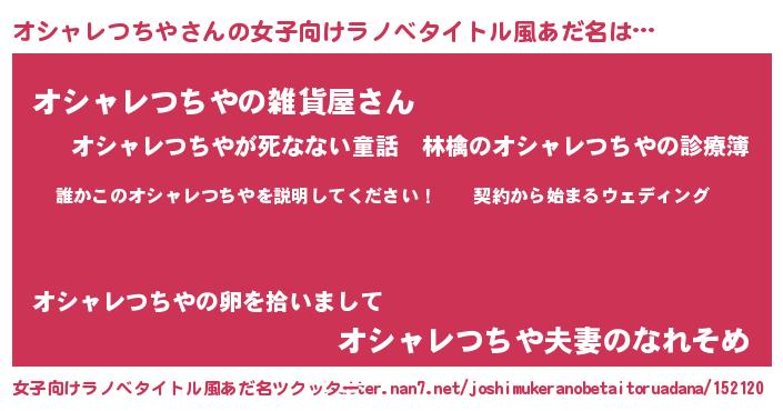 | 胡散臭い通販商品みたいなあだ名 | 『億万長者になれるブレスレット…その名も「オシャレつちや」』 |