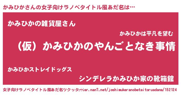 | 男性向けラノベタイトル風あだ名 | 『かみひかの憂鬱』 |