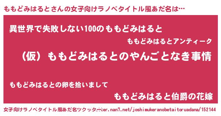 | 胡散臭い通販商品みたいなあだ名 | 『必ず成功する水晶球…その名も「ももどみはると」』 |