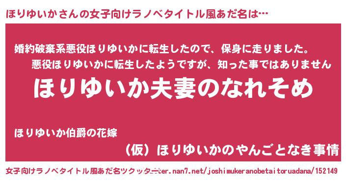 | 意味不明あだ名 | 『眠気覚ましガムほりゆいか味』 |