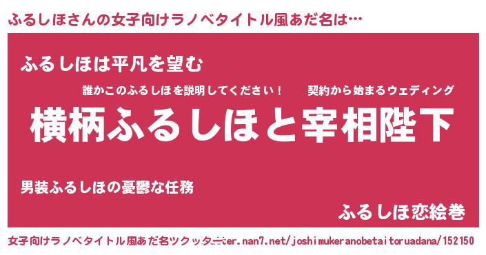 | 男性向けラノベタイトル風あだ名 | 『ふるしほに滅ぼされるだけの簡単なお仕事です』 |