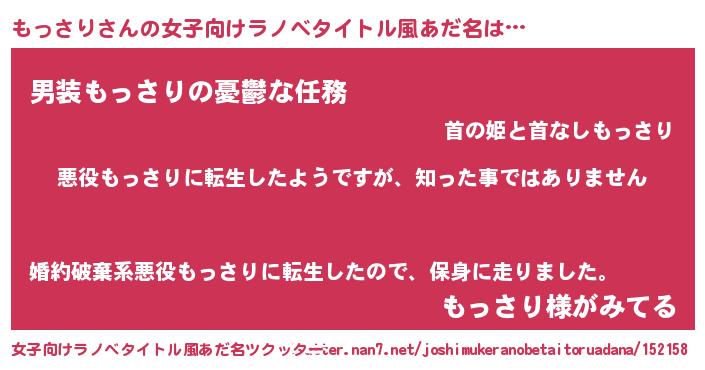 | 胡散臭い通販商品みたいなあだ名 | 『あなたにだけ特別に提供する100年もののヴィンテージワイン…その名も「もっさり」』 |