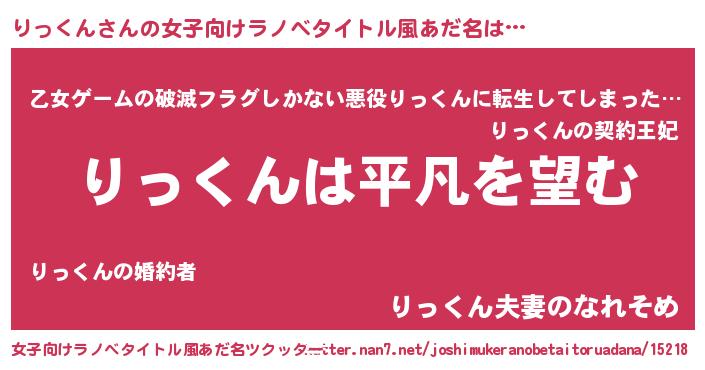 | 男性向けラノベタイトル風あだ名 | 『ダンジョンにりっくんを求めるのは間違っているだろうか』 |