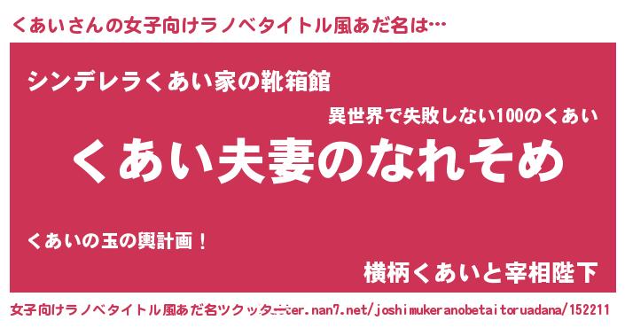 | 欧米人風あだ名 | 『ダニエルくあい』『アンジェラ・くあい』 |