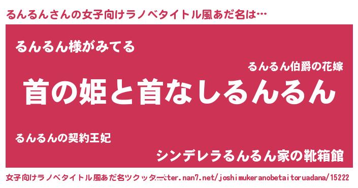 | ヒーロー風カッコイイあだ名 | 『暗黒騎士ルン』『ウルトラるんるんマン』 |