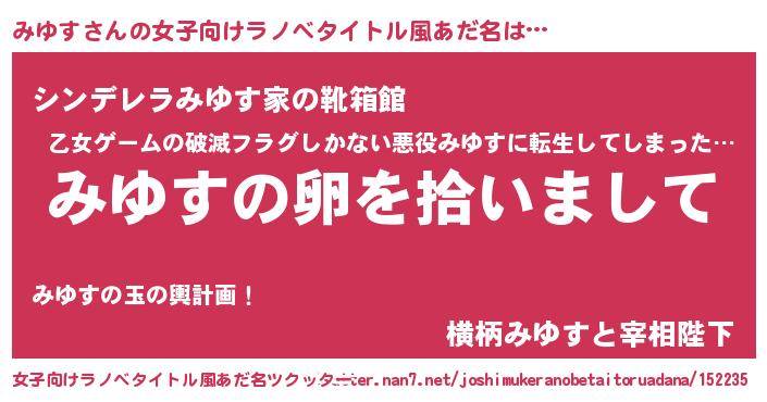| 男性向けラノベタイトル風あだ名 | 『ダンジョンにみゆすを求めるのは間違っているだろうか』 |