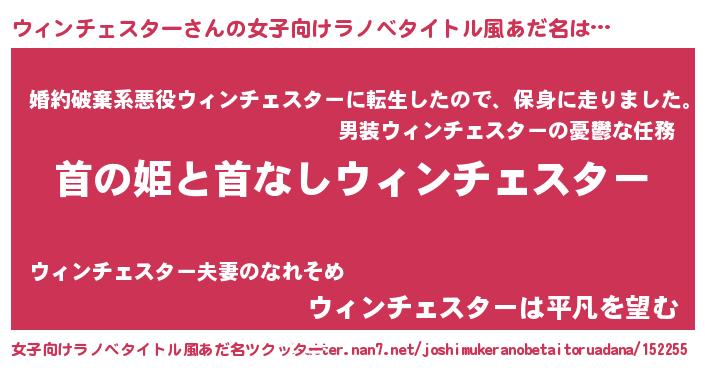 | 意味不明あだ名 | 『しいたけ科ウィンチェスター属』 |
