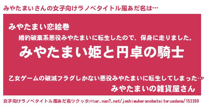 | ファンタジー風あだ名 | 『ミヤフェル』『クインミット』 |