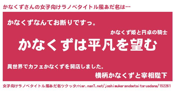 | 胡散臭い通販商品みたいなあだ名 | 『信頼と実績のサプリメント…その名も「かなくず」』 |