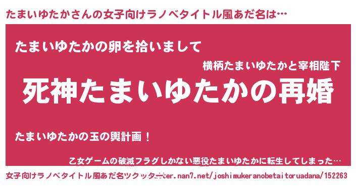 | 男性向けラノベタイトル風あだ名 | 『ノーゲーム・ノータマイユタカ』 |