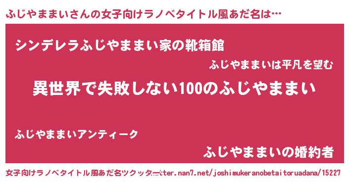 | 男性向けラノベタイトル風あだ名 | 『ふじやままいという概念が存在しない退屈な世界 』 |