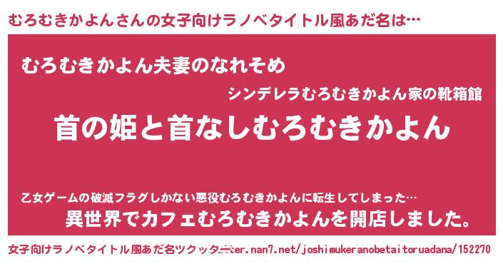 | 男性向けラノベタイトル風あだ名 | 『はたらくむろむきかよんさま!』 |