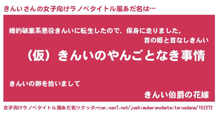 | 男性向けラノベタイトル風あだ名 | 『きんいの憂鬱』『はたらくきんいさま!』 |
