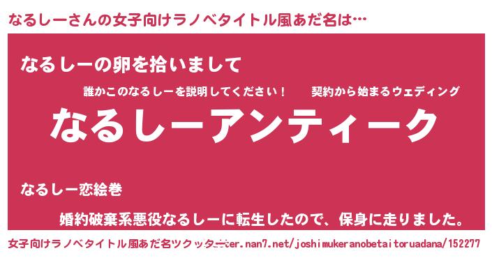 | 意味不明あだ名 | 『自称なるしー』『めかぶ科なるしー属』 |
