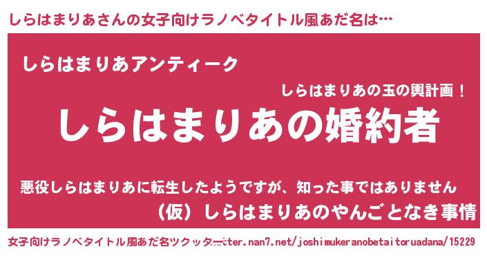 | 意味不明あだ名 | 『しらはまりあフォーエバー』 |