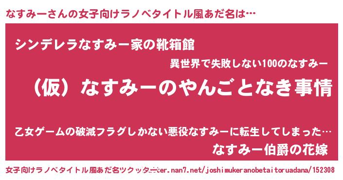 | 男性向けラノベタイトル風あだ名 | 『なすみーの憂鬱』『緋弾のナスミー』 |