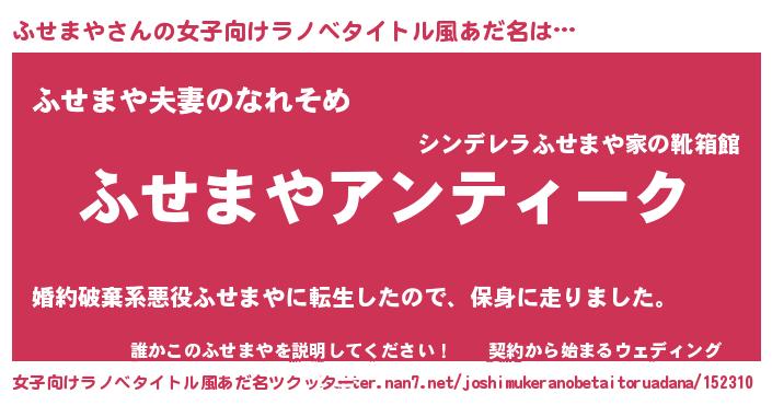 | 意味不明あだ名 | 『自称ふせまや』『ペロリンふせまや』 |
