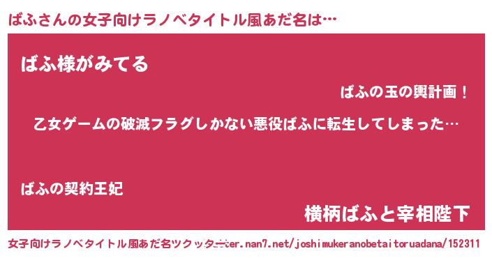 | 男性向けラノベタイトル風あだ名 | 『この素晴らしい世界にばふを!』 |